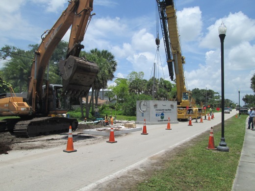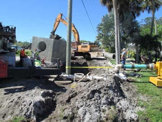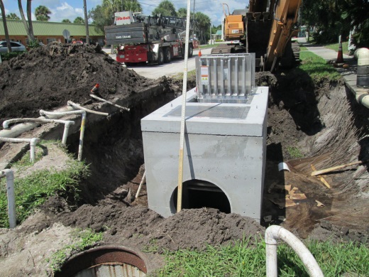 The construction included the installation of three nutrient separating baffle boxes with filters to reduce pollutants at the drainage outfalls. The project also included drainage pipes, shallow grassy swale and other best management practices to remove pollutants. These three baffle boxes are the new generation boxes with filters to exceed National Pollutant Discharge Elimination System (NPDES) requirements in removing nutrients such as 80% total phosphorus and 47% of total nitrogen. The Washington baffle box is part of a watershed area of 37.5 acres and the Indian River Drive/Martian and Coolidge baffle boxes covers two outfalls with watershed area of 29.4 acres. Both watershed areas include the street pavement surface areas of Washington, Martin, Indian River Drive, Cleveland, Coolidge and US 1 from Coolidge to Main Street. As part of this grant funded projects, monitoring and testing of the drainage outfalls were conducted and water samples tested for phosphorus and total nitrogen. In addition, the City of Sebastian conducted in-house water sample collections and testing of Stormwater runoff.
