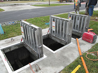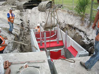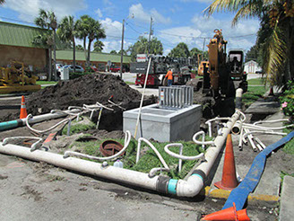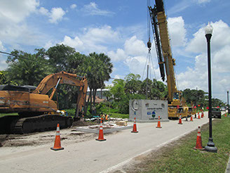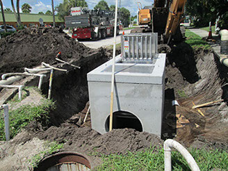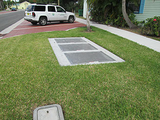 The City has taken major advances in the last few years to reduce storm water pollutant into the Indian River Lagoon by installing Nutrient Separating Baffle Boxes with filters to reduce the amount of nitrogen and phosphorus. The photos are from the recently completed street enhancement project called “Presidential Streets” which installed three baffle boxes to the existing drainage outfalls into the Indian River Lagoon